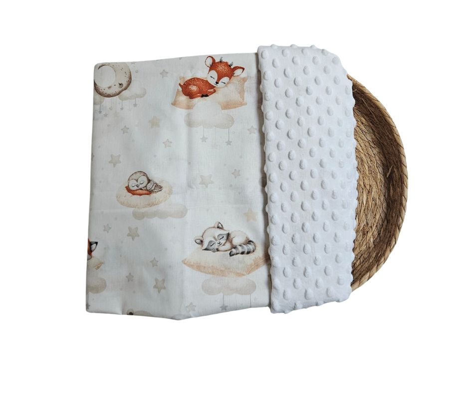 Designul cu vulpițe,căprioare, ratonei, bufnițe toate somnoroase și în nuanțe calde atrag imediat privirea și transmit liniște, calm și un praf de somn.
